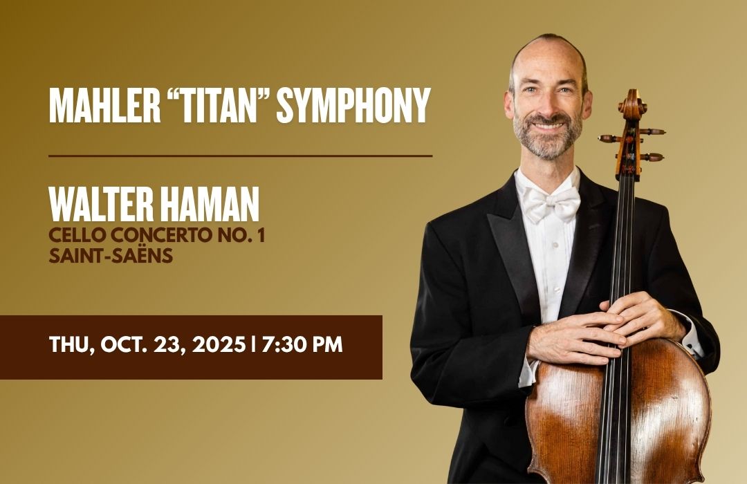 Adding to the evening’s artistry, acclaimed cellist Walter Haman will perform Saint-Saëns’ Cello Concerto No. 1 , a dazzling and expressive work beloved for its elegance and fiery virtuosity.